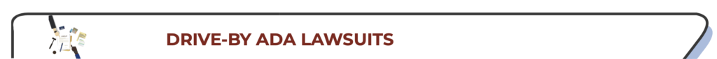 This involves the filing of single or multiple ADA lawsuites against non-compliant businesses. Whether done by a single organization or by multiple individuals, drive-by lawsuits can result in significant legal and settlement costs.
